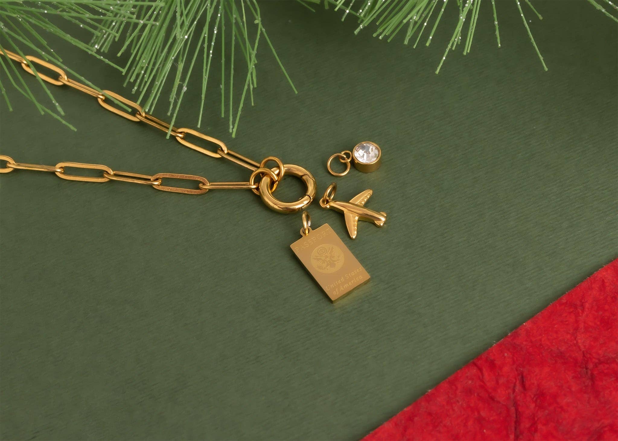Elevate every adventure with our 18K Gold PVD Stainless Steel Travel Carabiner Charm Gift Set. Designed for both style and function, this versatile charm set makes the perfect gift. Crafted with a durable stainless steel core and finished in radiant 18K gold PVD, it delivers lasting brilliance, scratch resistance, and lightweight wearability. Complete with elegant packaging, this set is a thoughtful gift for birthdays, holidays, or anyone who loves to travel in style.