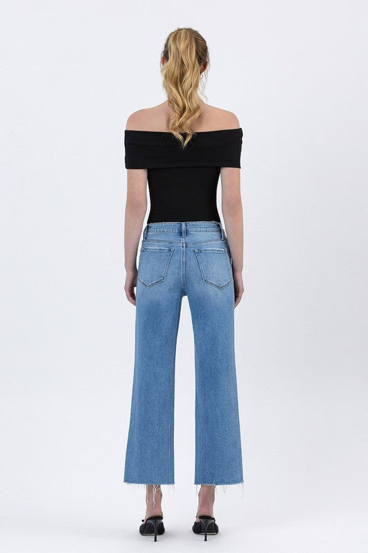 The Peyton Jeans strike the perfect balance of sleek sophistication and everyday ease. These high-rise slim wide jeans in comfort stretch denim sculpt your silhouette with a flattering high waist, then flare gently into a cropped, raw-hem finish that hits just right at the ankle. The slim-through-the-thigh wide-leg cut elongates your legs while keeping things modern and effortless. Versatile enough to dress up with heels and a sleek top or keep casual with sneakers—the Peyton Jeans deliver polished comfort that feels as good as they look. Step in and feel instantly elevated.