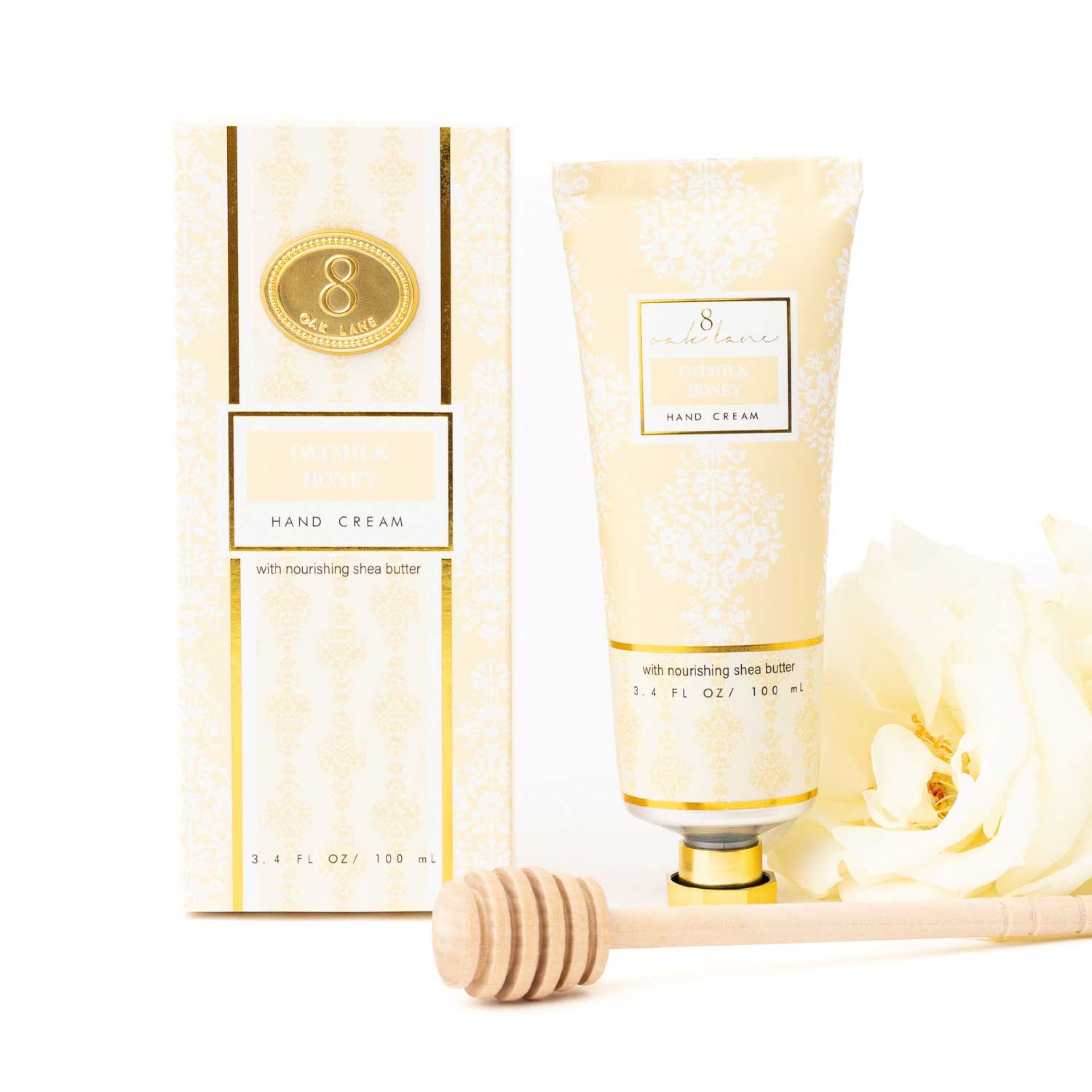 Luxurious, Nourishing & Gift-Ready! Elevate your hand care routine with our 100ml hand cream, expertly formulated to hydrate and soften even the driest skin. Enriched with nourishing ingredients like shea butter, this rich yet fast-absorbing cream leaves hands feeling silky-smooth and delicately scented, without any greasy residue. Each tube comes in chic, printed packaging and is paired with a matching printed box, making it a perfect gift for friends, family, or yourself. Stylish, practical, and indulgent, this hand cream transforms everyday skincare into a luxurious ritual, while the elegant presentation ensures it’s as delightful to give as it is to receive. Infuse your home with cozy, comforting warmth with our Oatmilk Honey hand cream. Featuring a classic damask toile print set against a soft butter yellow background, this collection exudes timeless charm and elegance. The accompanying fragrance blends sweet Tupelo honey, nutty almond, and lightly sugared oats.