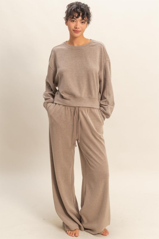 Stay cozy and chic with the Dalila Set, featuring a matching sweatshirt and sweatpants designed for elevated casual comfort. Available in dreamy fall hues—light mocha for a neutral, understated vibe, or dark cherry to add a playful pop of color to your wardrobe. Perfect for lounging or casual outings with a stylish twist!