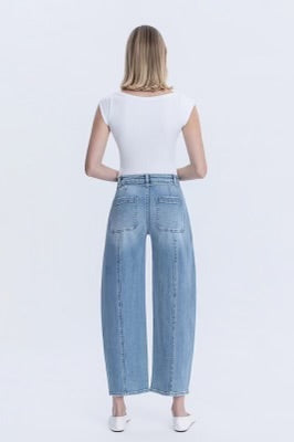 Introducing the Kate Jeans, a stylish and versatile addition to your wardrobe. These barrel jeans feature a unique tie design that adds a touch of sophistication to any outfit. Made with high-quality materials, they offer comfort and durability for everyday wear. Elevate your style with the Kate Jeans.