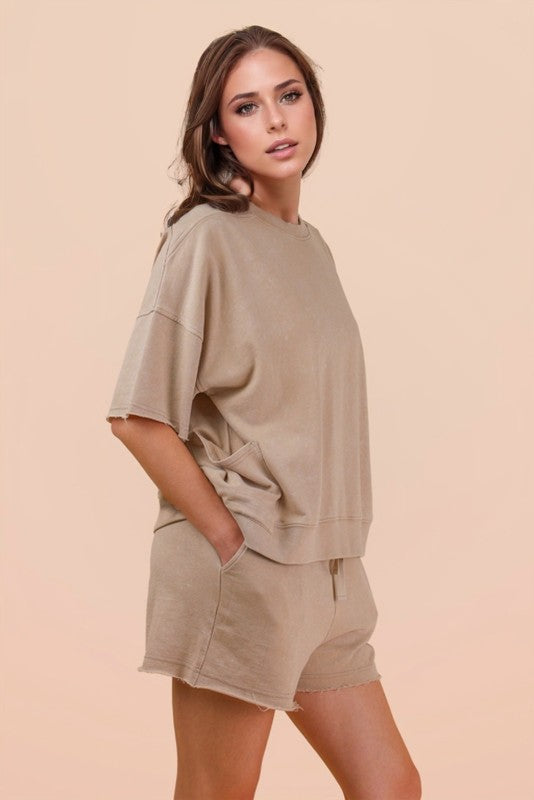 Effortless comfort meets laid-back style with the Roxie Set. This mineral-washed knit ensemble features a relaxed casual top paired with matching shorts, perfect for weekend lounging or casual outings. The soft, breathable fabric drapes beautifully while maintaining its shape, making it an ideal choice for those who prioritize comfort without sacrificing style. Mix and match with your favorite accessories for endless styling possibilities.
