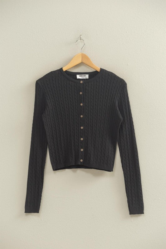The Nora Cardigan will have you cozy and stylish all at once. Made from a luxurious sweater knit material, this fitted cardigan is perfect for chilly days. Available in black and dark taupe, it's a versatile addition to your wardrobe. Stay warm and fashionable with Nora.